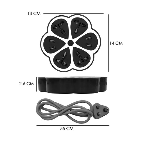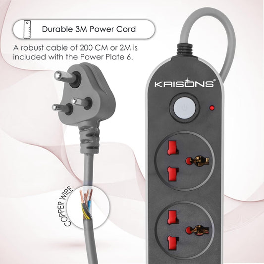 Krisons Power Plate 002 with 6 USB Port + 3 Power Sockets Smart Electric Universal Extension Board Multi Plug with 2500W, 3Mtr Cord Length, 2.1A USB Output(Black)
