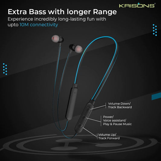 Krisons Rockblue Neckband with 25 Hrs runtime Deep Bass Speaker Headset (Green, in-Ear) Bluetooth Headset (Black Green, True Wireless)