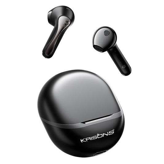 Krisons TWS-002 Wireless Earbuds, Black, True Wireless Stereo, Portable Charging Case