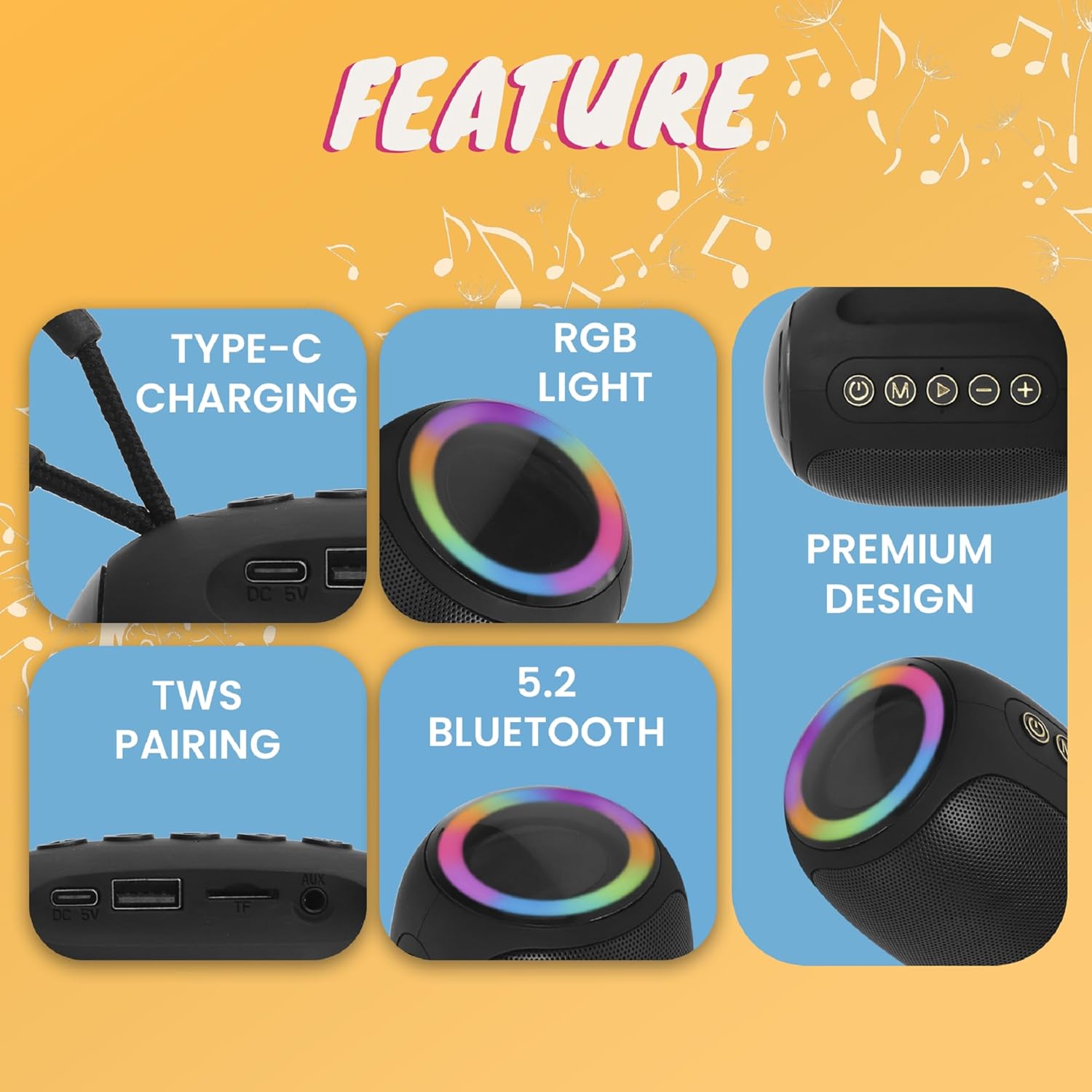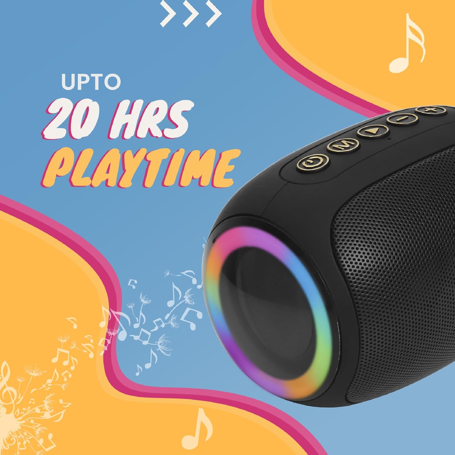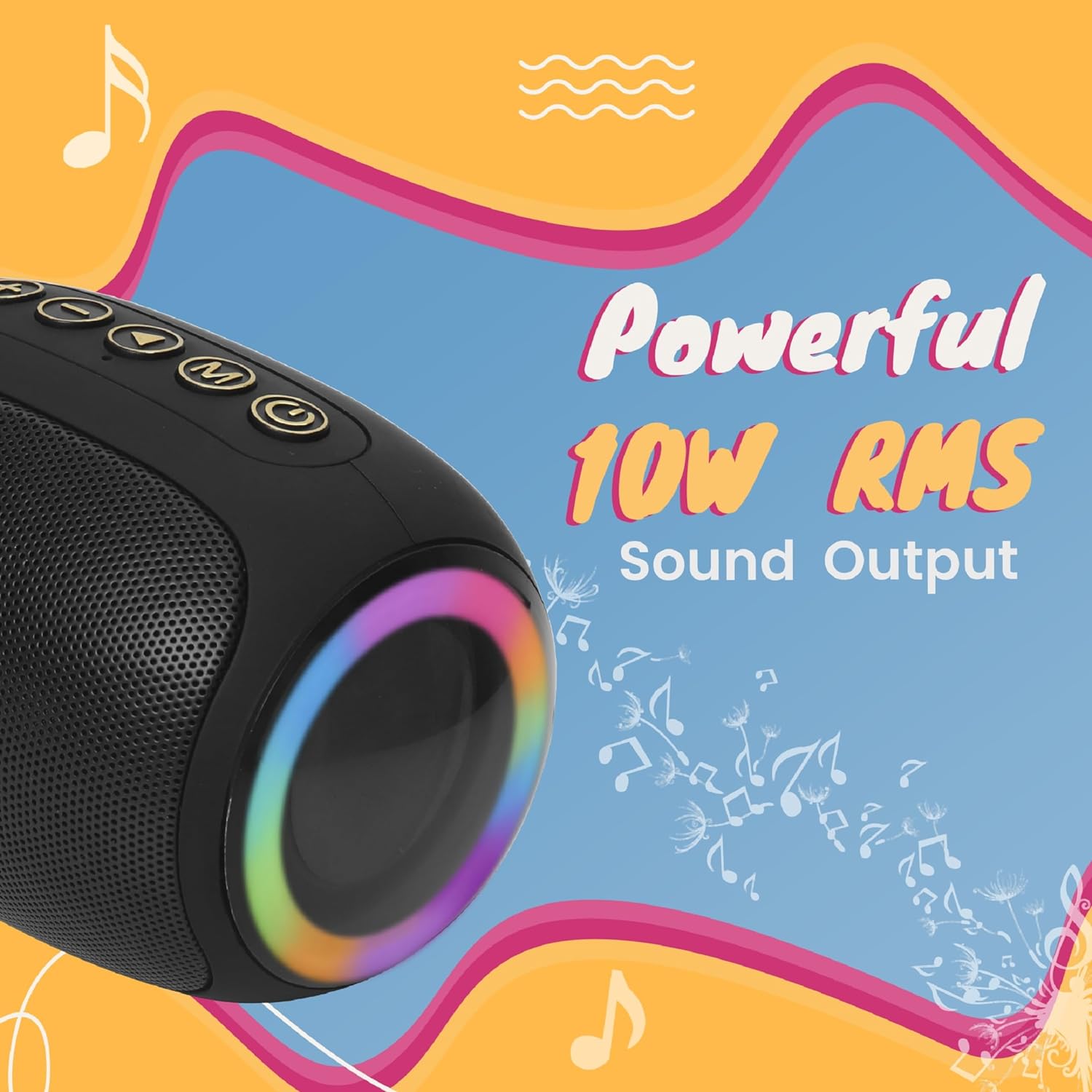 Krisons Spark Glow 10W Portable Bluetooth Speaker with RGB Lights, USB, SD Card & Handsfree Calling – Black