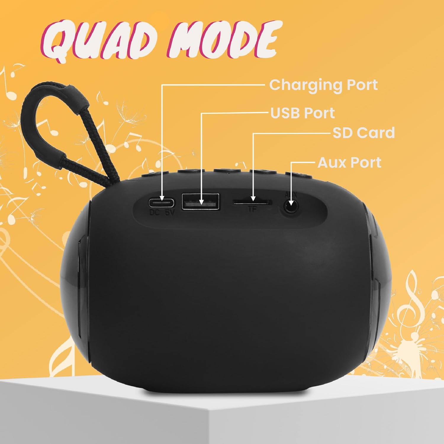 - 10-WATT PEAK POWER: This wireless Bluetooth party speaker has a maximum power of 1000-watt PMPO with 3" Speakr for full range surround stereo sound reproduction and impressive bass response. So, you can make a party rock and listen to your favorite tracks as loud as you want